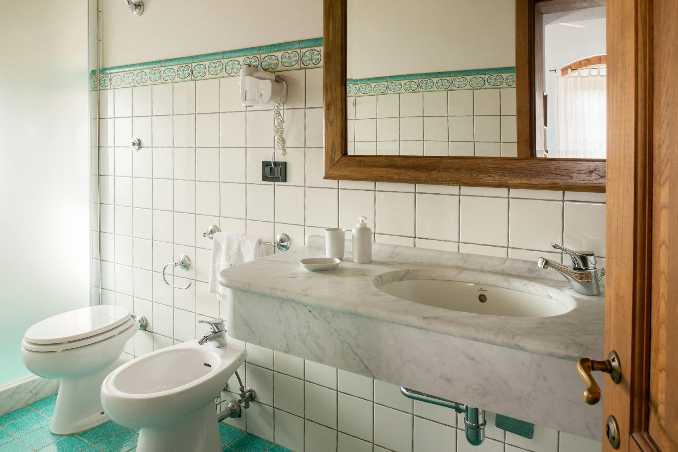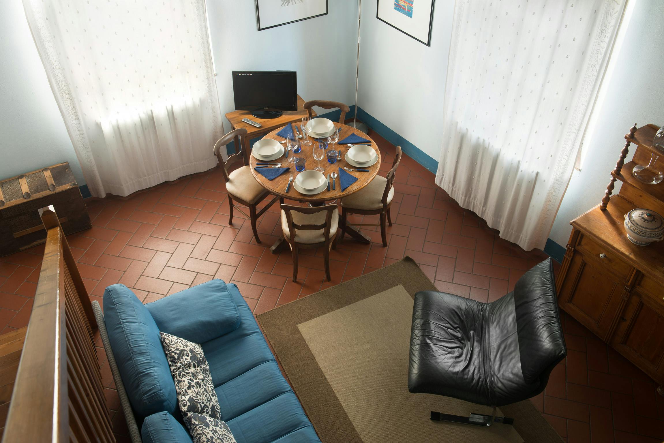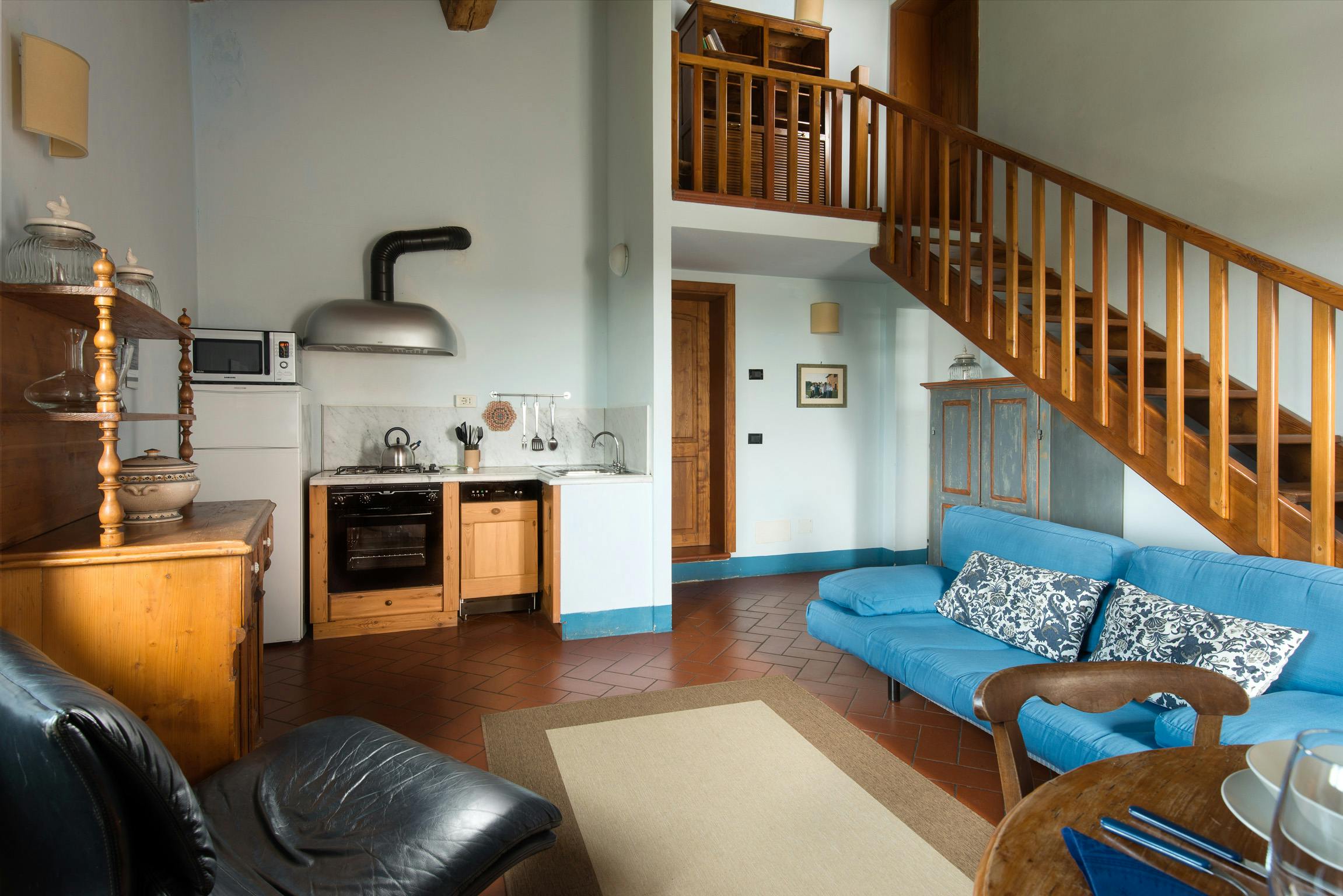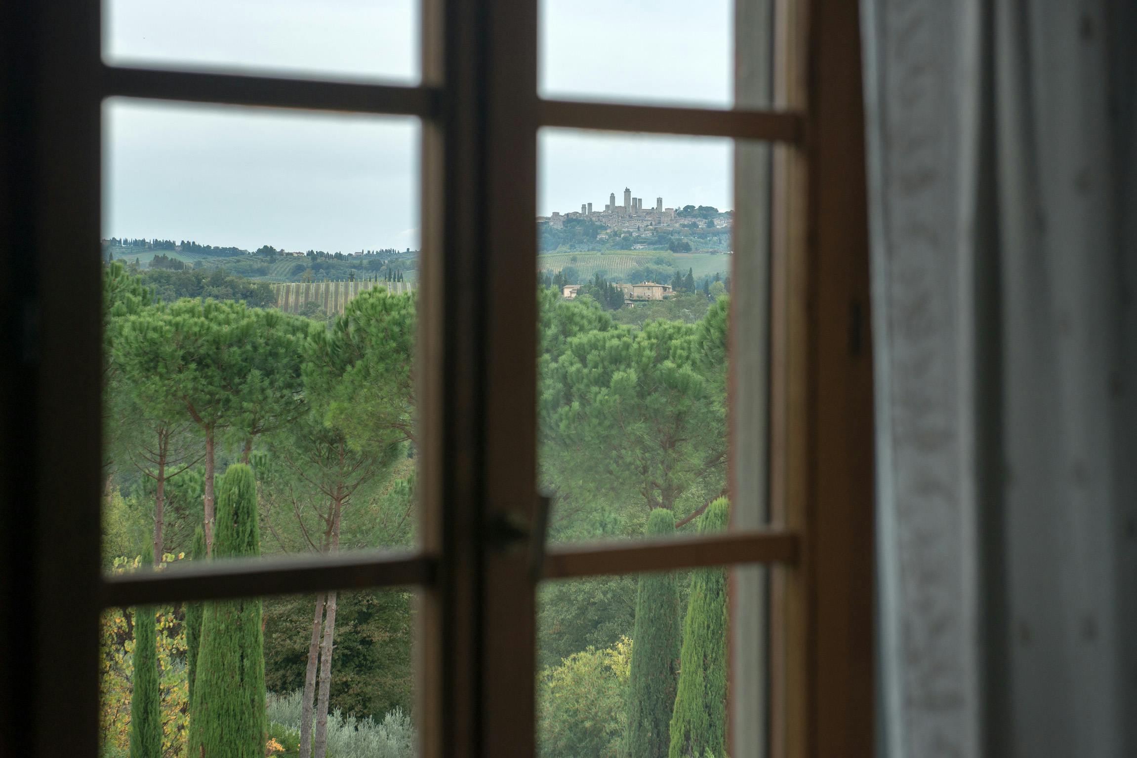 LA VEDUTA- tutto piano primo: soggiorno, cucina, 2 camere, 1 bagno. Aria condizionata e ventilatore a soffitto. , tot mq. 68 (persone 4). Molto panoramico, vista su San Gimignano.